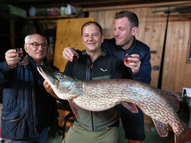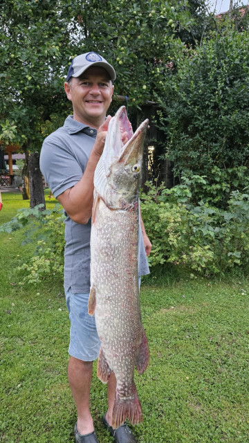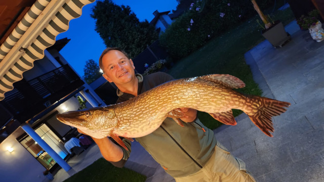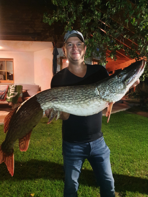Gesponserter Hecht 2020, 31.08.2020 Sigi hat wieder einen schönen Hecht gelandet. Diesen Fisch hat er der Fischerrunde gespendet und er wird beim Fredi an einem Clubabend verspeist.