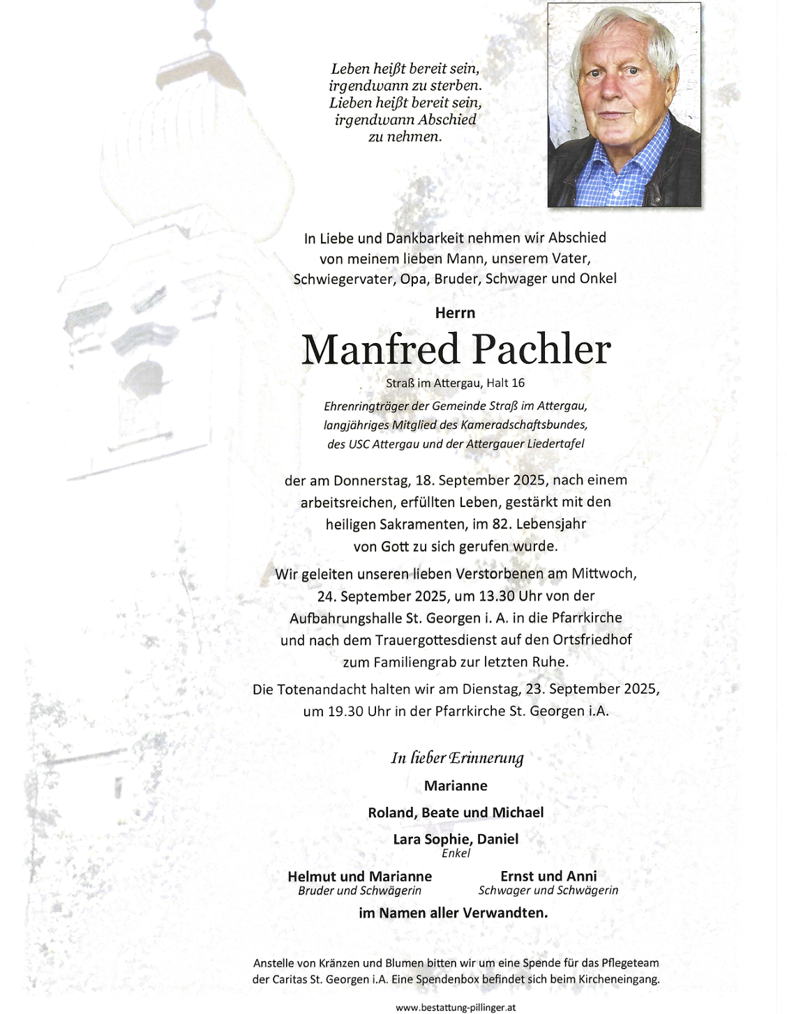 Manfred Pachler 1943 – 2025, Am 18.9.2025 verstarb Manfred Pachler. Er war 15 Jahre Mitglied unserer Fischerrunde und bei allen beliebt und respektiert.